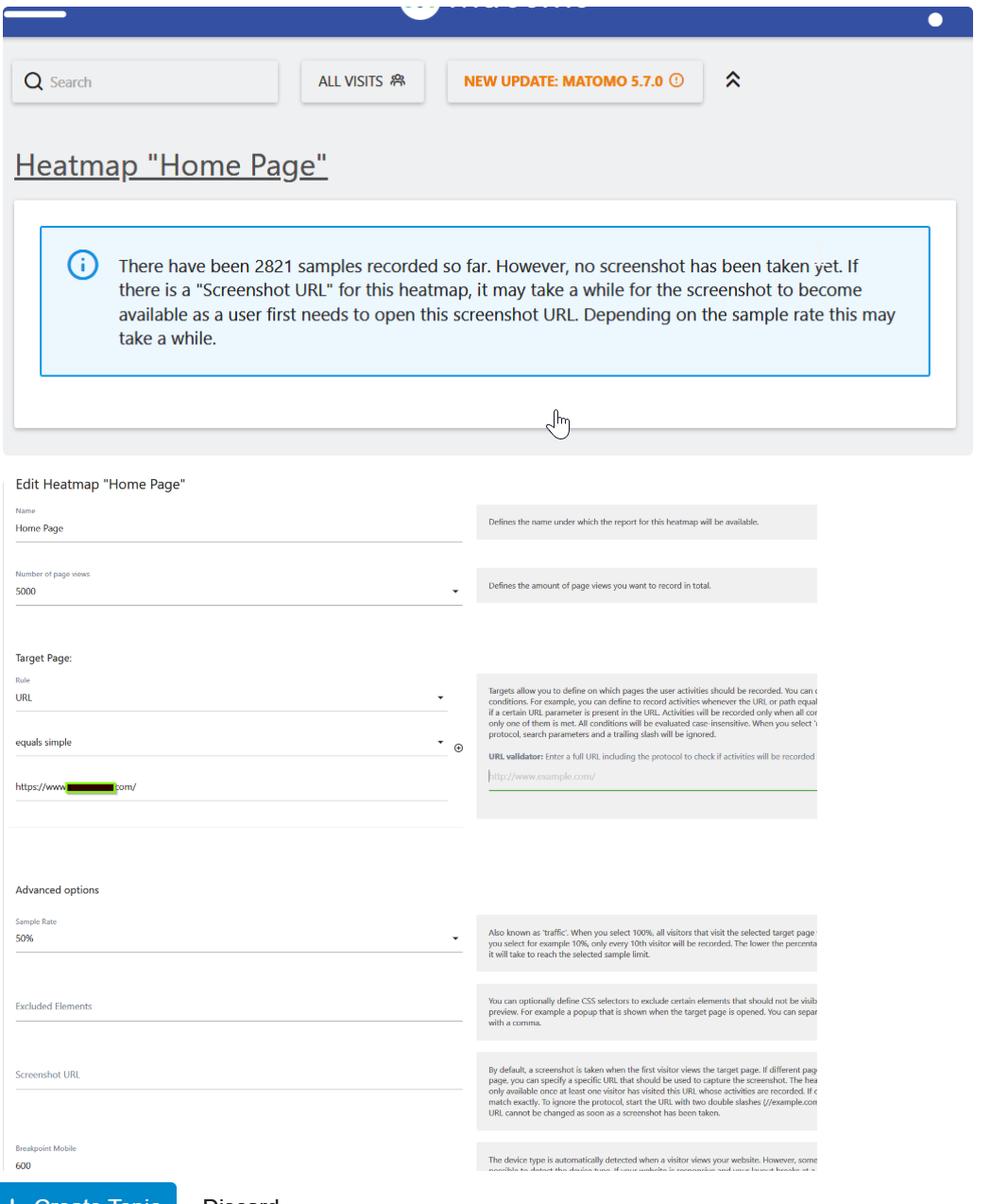 I gave Matomo on-prem and aid for the heatmap feature. However, I set bunch pf pages up and am not seeing anything, just messages like this: