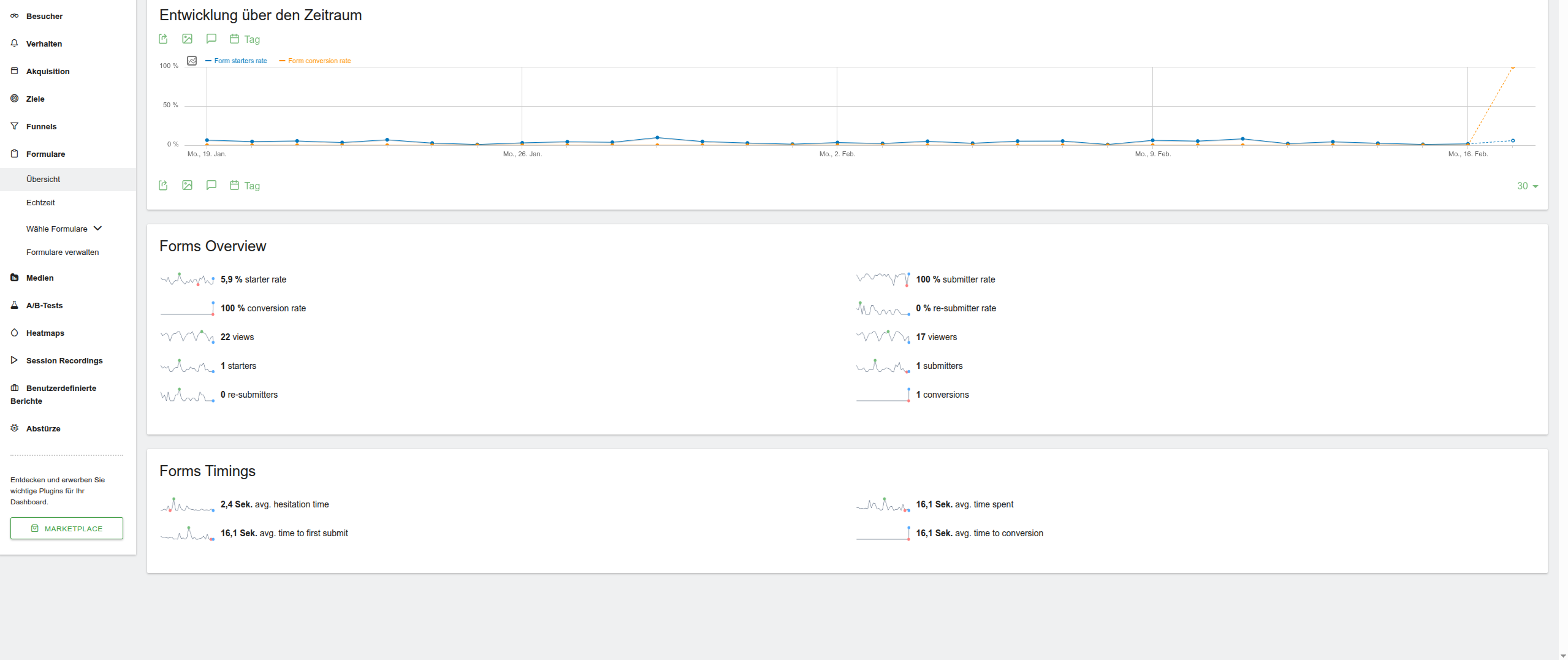 However, unlike in the demo, I don’t see individual forms listed in the overview of the report. In my case, there is no overview showing specific forms with their metrics at a glance.